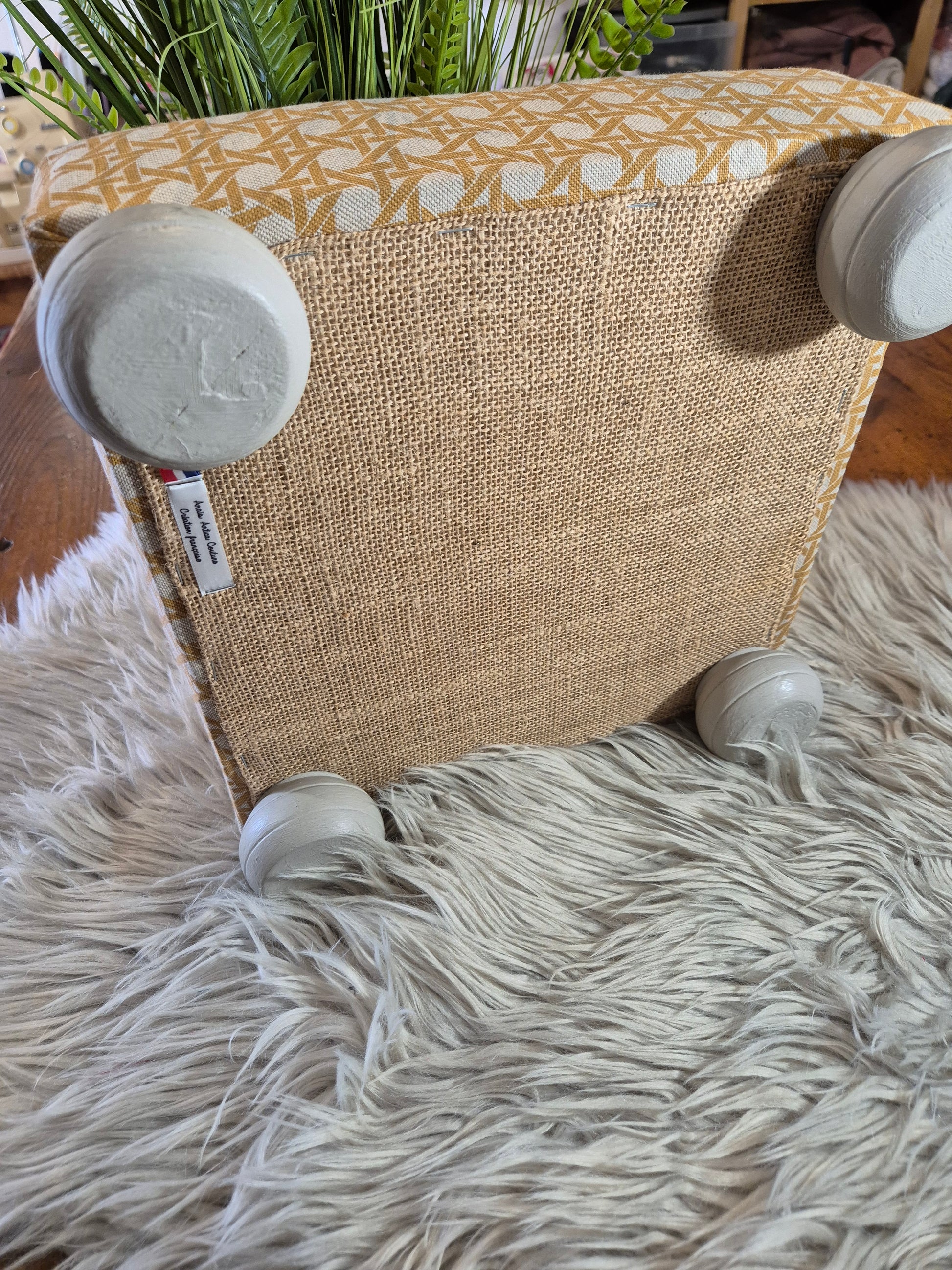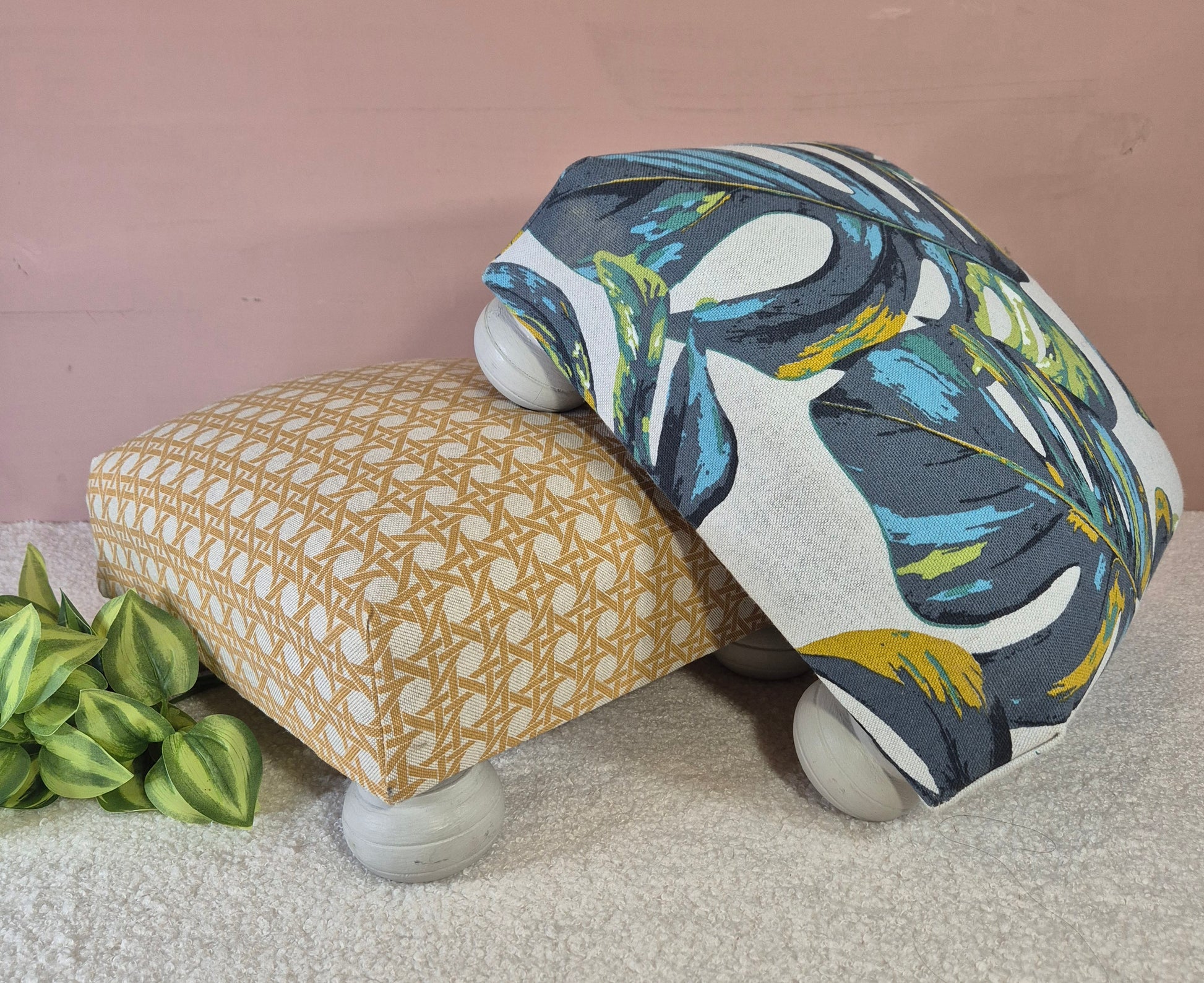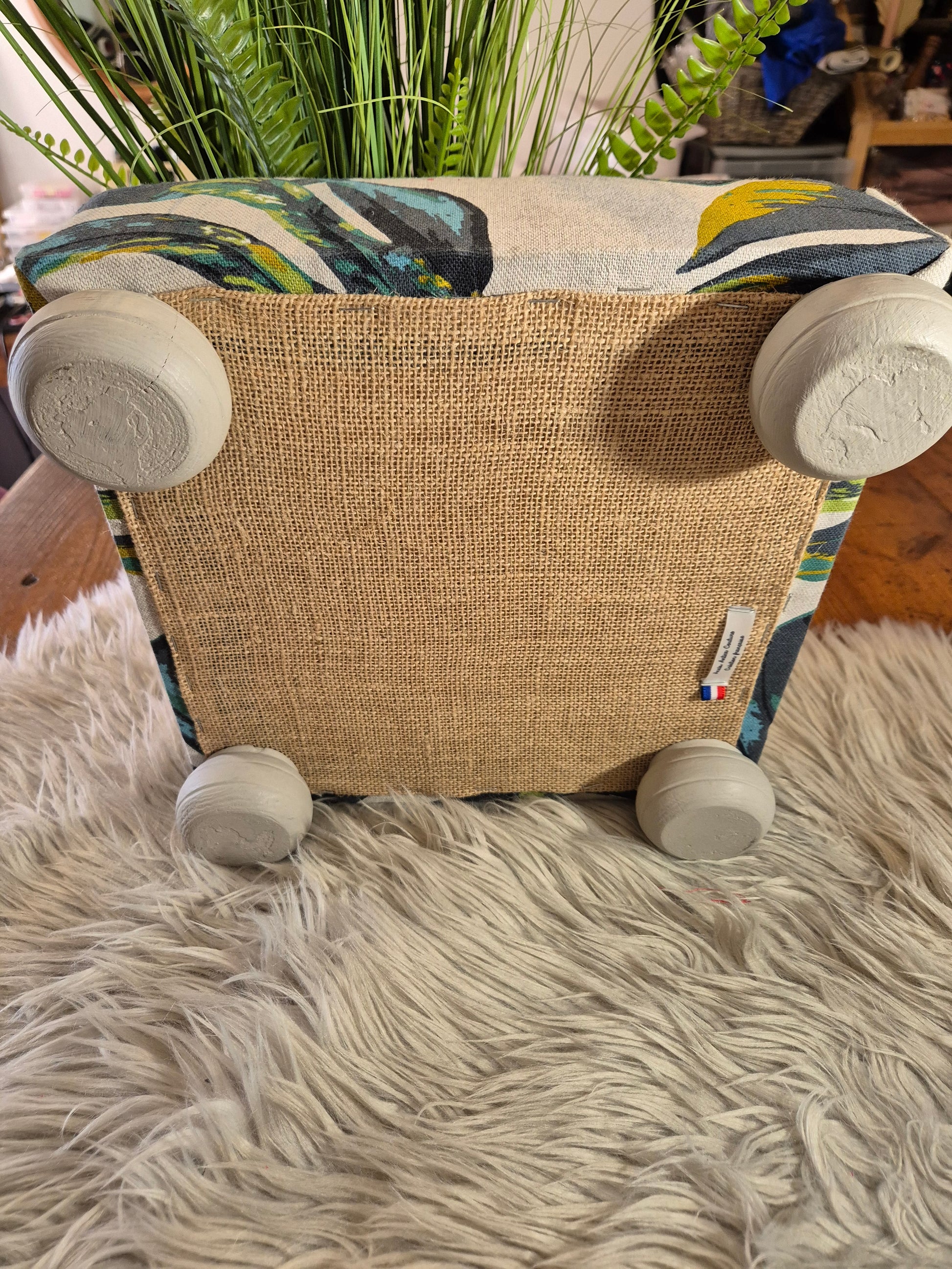 Repose pied tissu Monstera emeraude ou cannage