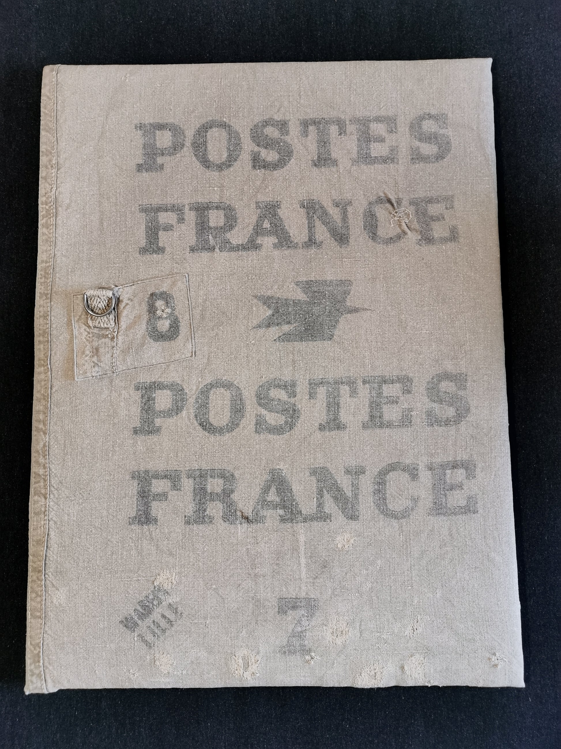 Toile murale réalisée avec un ancien sac de tri la poste des années 40/50